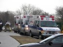 An Emergency Evacuation Drill at Glens Falls Hospital Warren County Emergency Services Mobile Resource Captain Bill La Pierre assists with the deployment of the County MCI shelter.